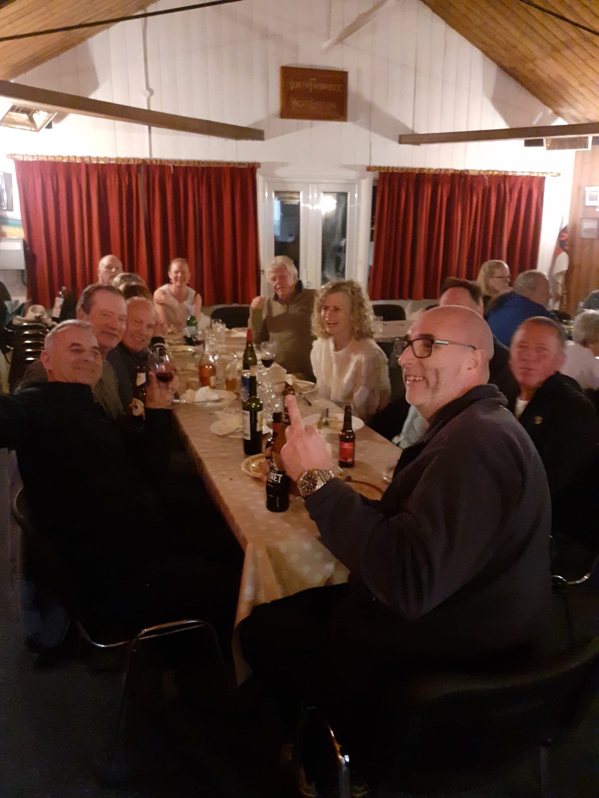 As the sailing season is nearly upon us, the NFYC held its traditional Fitting out supper in our historical clubhouse. Members and committee chatted away the evening, a lot a lamp swing from Lee and Paul. A full spread of hearty food was laid out for the club members, a big thank you to all the cooks who slaved away in their kitchen beforehand. And a bigger thank you to the member who turned up to eat all the lovely food. Funds were raised for the club; that’s always a good thing.