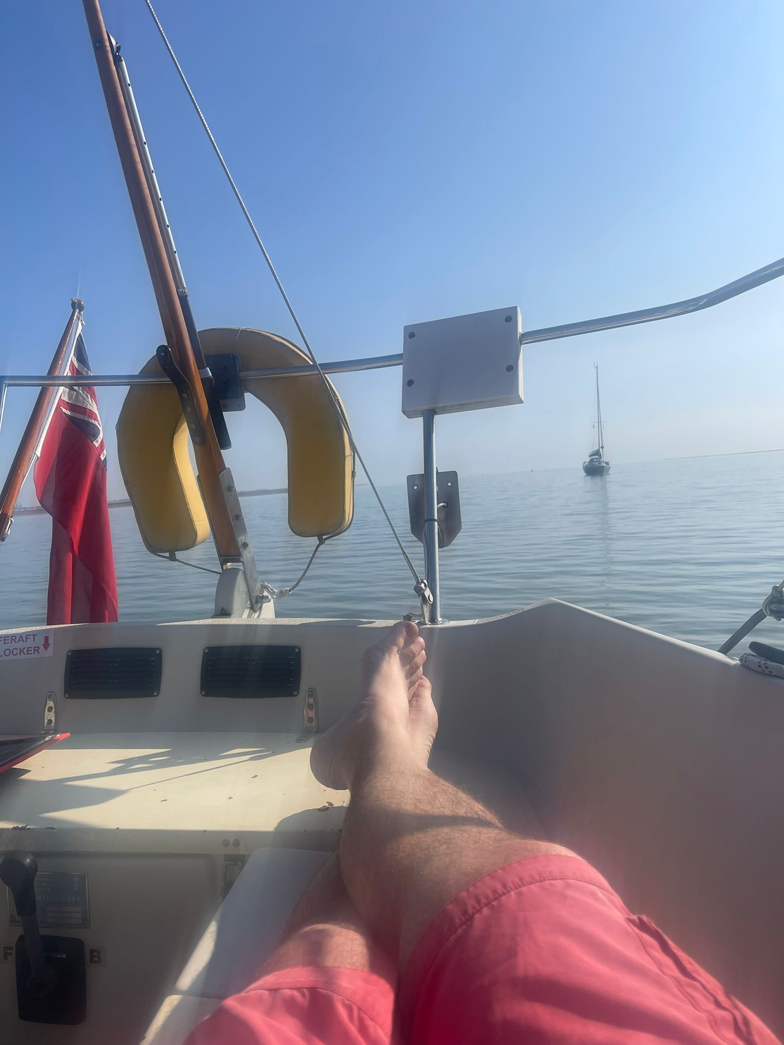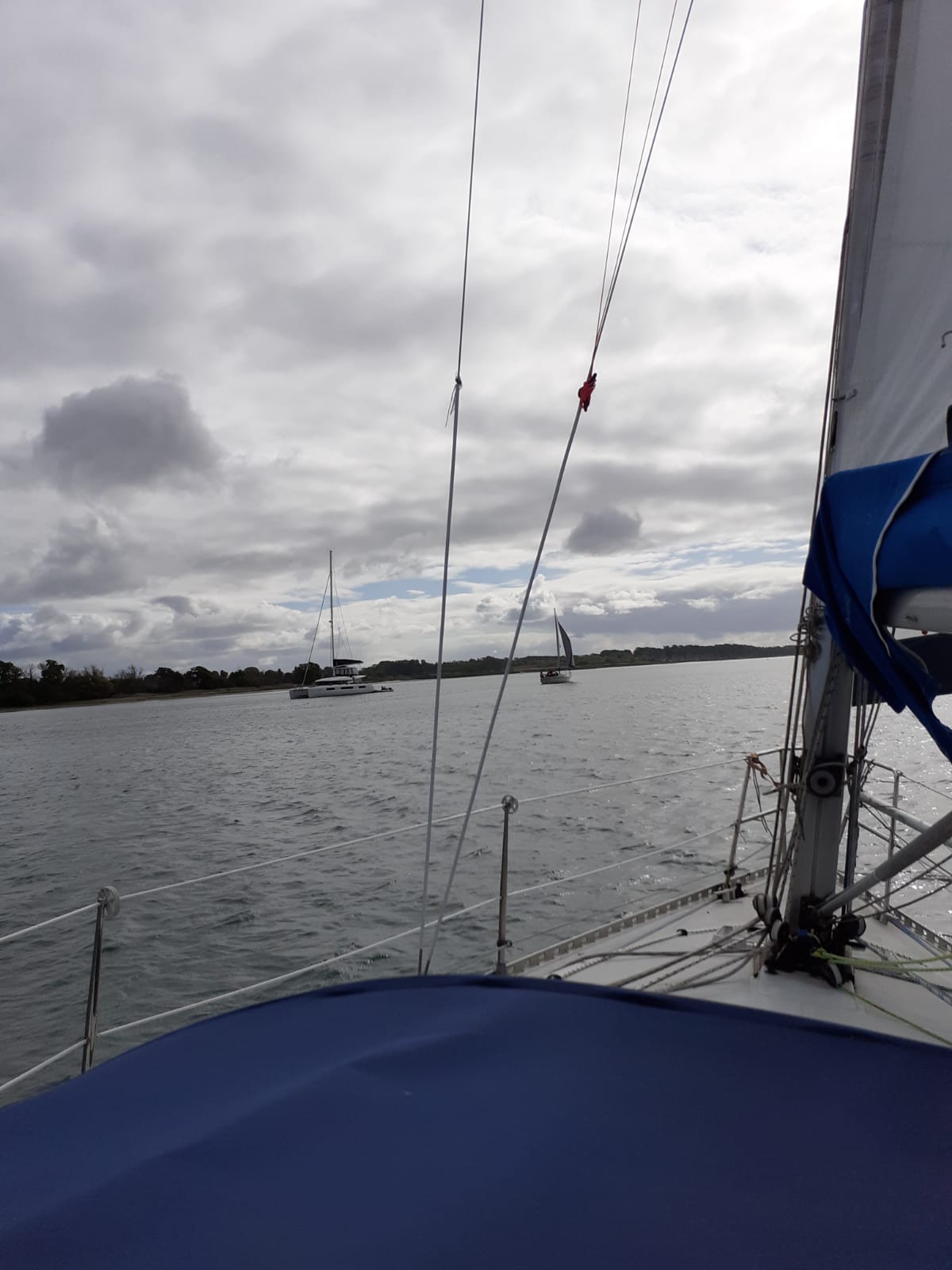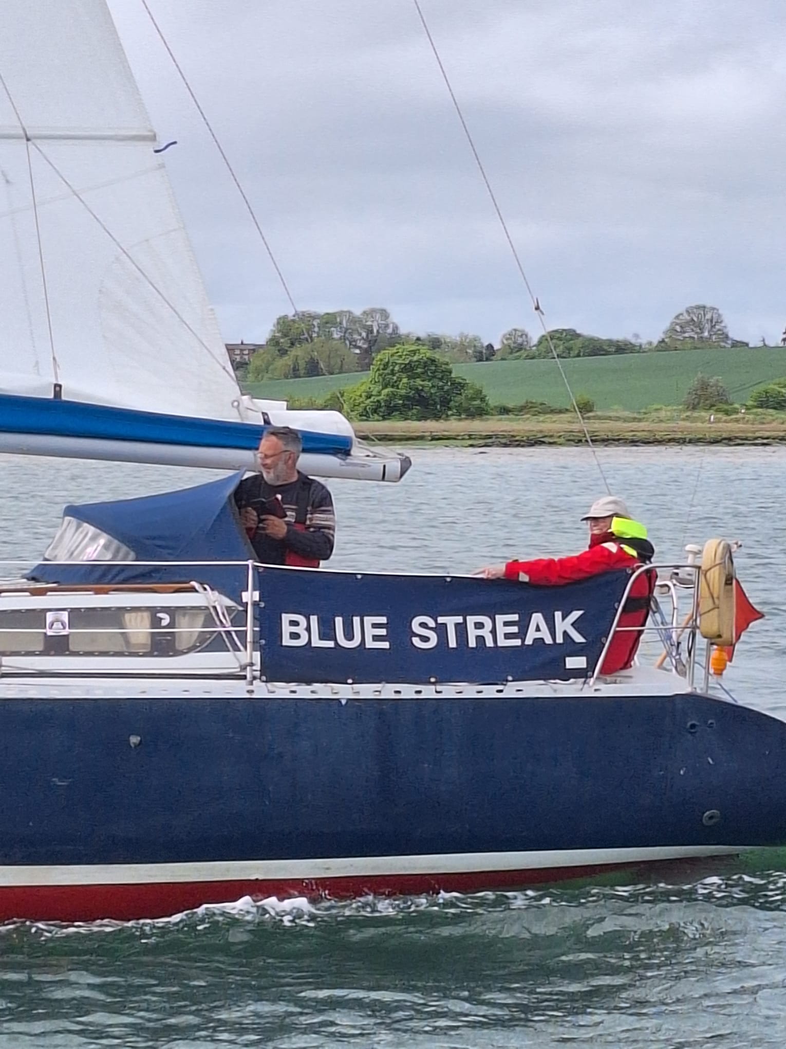The following morning, after Blue Streak’s engine was repaired, the fleet made its way up the River Orwell to Pin Mill and the well-loved Butt and Oyster pub. Once moored, crews changed into their “go ashore” attire, and a “Menhic Uber taxi” was called to ferry everyone ashore in time for our dinner reservation. The meal was excellent, and spirits were high, especially as it was also the Commodore’s birthday. She extends her thanks to club members for the thoughtful card.