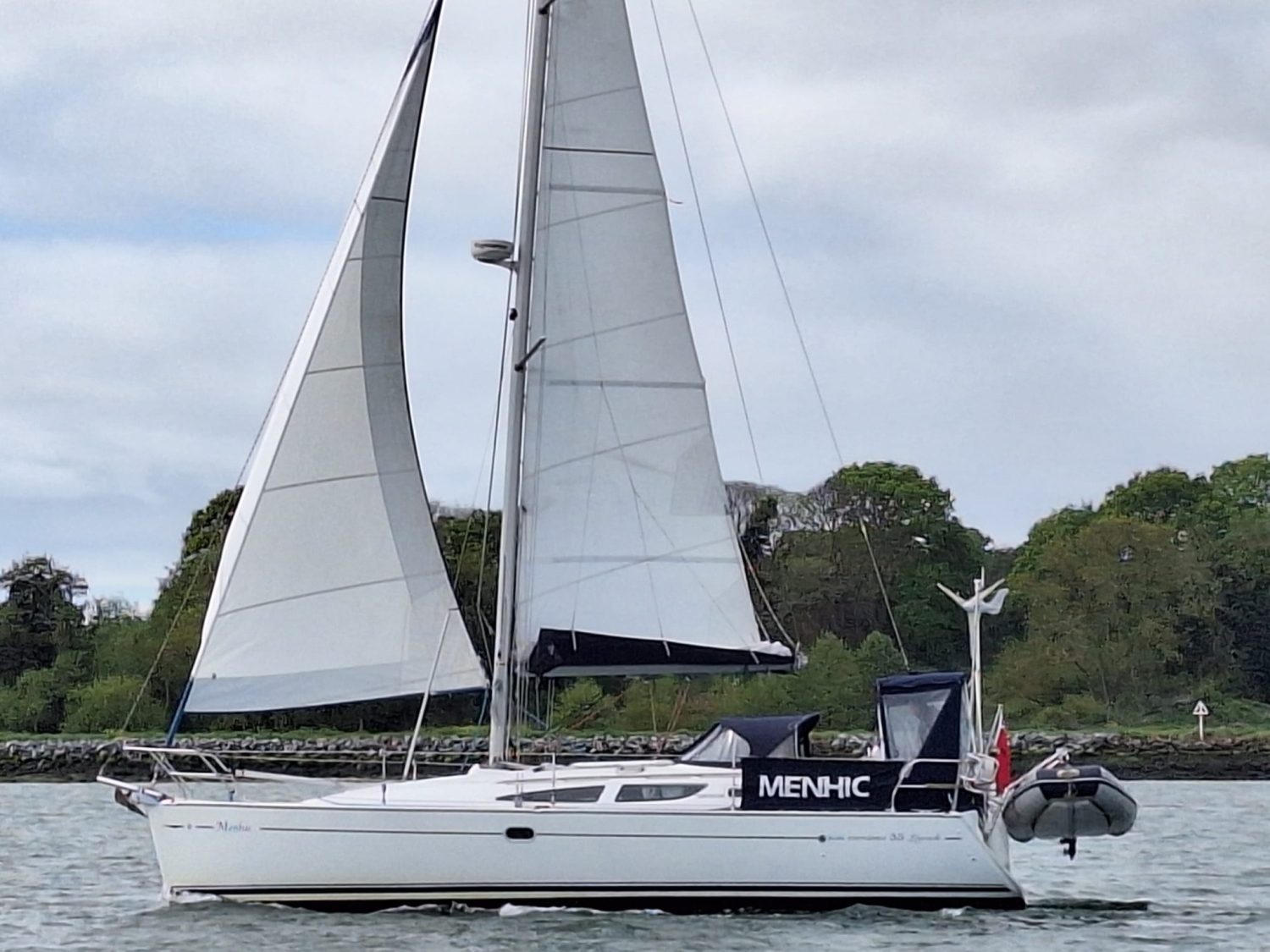On Sunday morning, crews were gently woken by the sound of a coaster heading upriver to collect its cargo. At 09:00, the fleet set off for home, leaving a day early due to poor weather forecasted for Monday. With reefs in and preventers rigged, the yachts had an exhilarating sail home with a following sea. The 50NM passage was completed in just 7 hours, averaging 7.3 knots. The weekend was rounded off with a shared meal aboard Menhic.