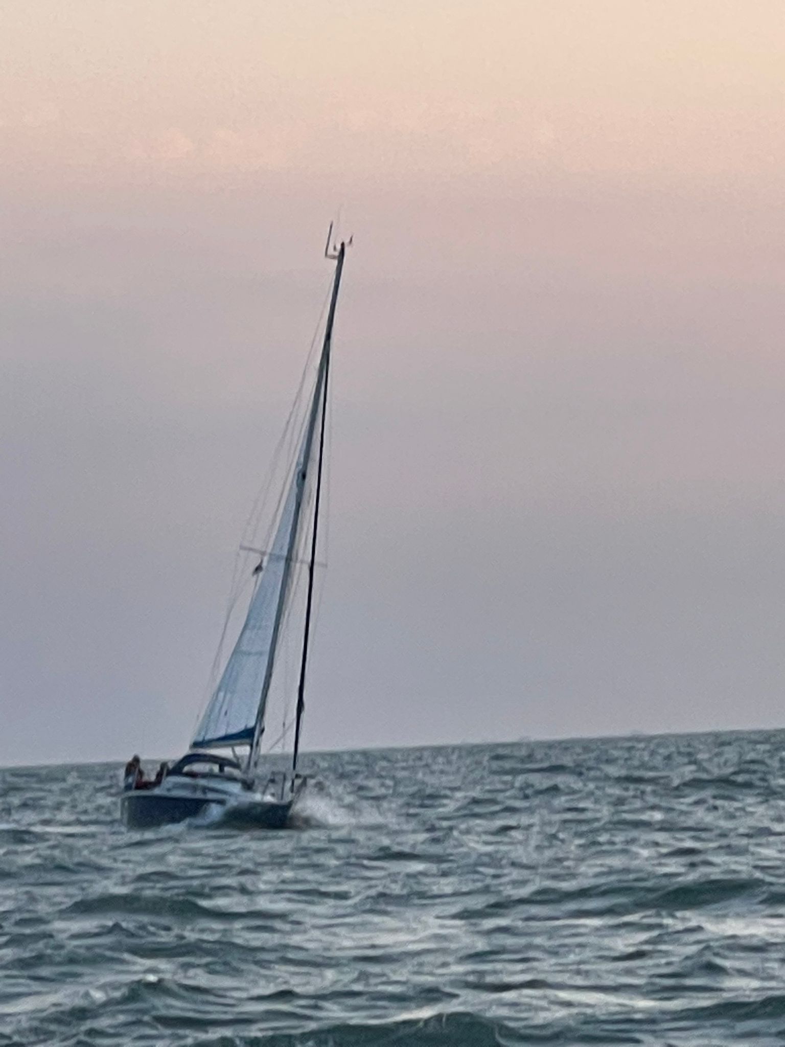 Obsession and Blue Streak passed through the Spitway just as the sun was setting. However, just off Holland-on-Sea, Blue Streak experienced an engine failure (more on that in attached article). Obsession anchored in Hamford Water around 04:00, with Blue Streak arrived an hour later after managing under sail.